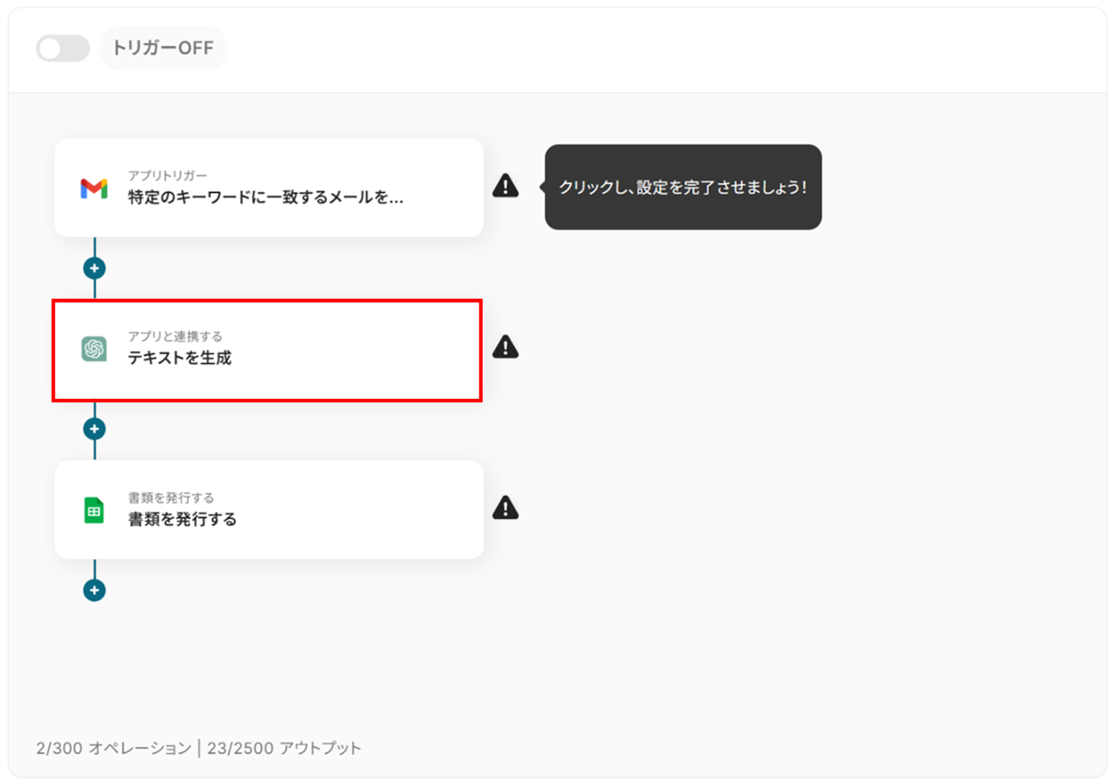 ・ChatGPT(OpenAI)のアクションを実行するには、OpenAIのAPI有料プランの契約(APIが使用されたときに支払いができる状態)が必要です。