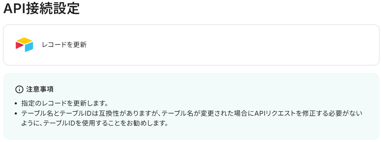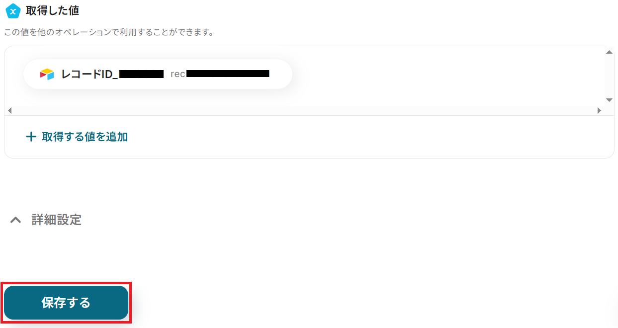 レコードIDにはAirtableから取得した「レコードID」の値が予め設定されているので、そのままで大丈夫です。