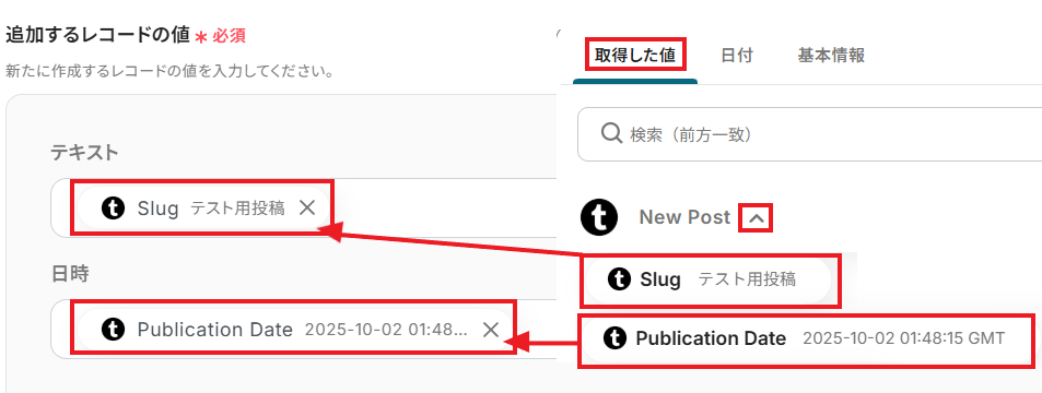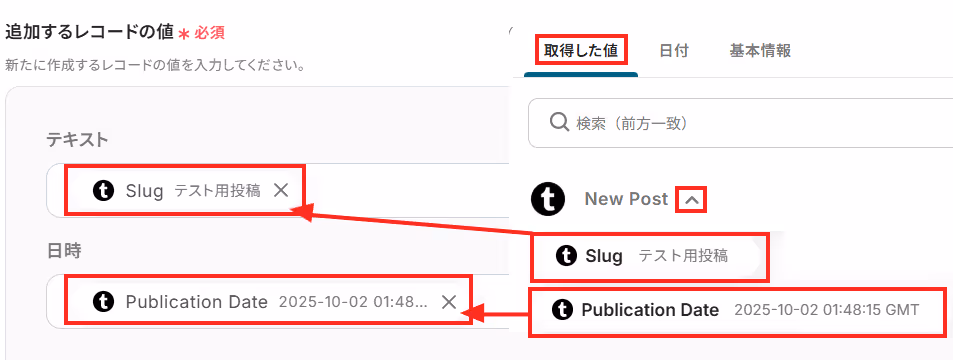 アプリトリガーで取得した値から、投稿されたTumblrの情報を設定していきましょう。