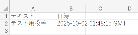 尚、テスト用に使用できるMicrosoft Excelファイルを用意できていない場合は、ここで用意しておきましょう。