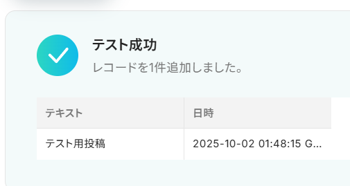 Tumblrにテスト用の投稿ができたら、Yoomの設定画面に戻って「テスト」ボタンを押してみましょう。