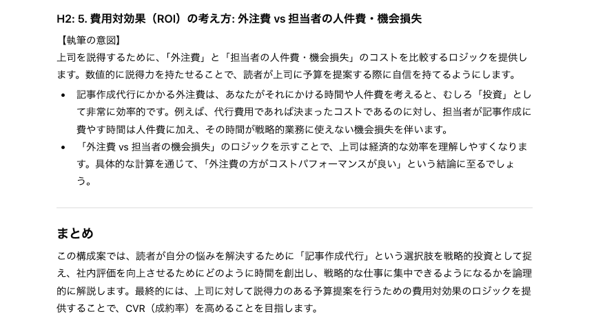 ・目的:記事作成代行を「単なる外注」ではなく「戦略的投資」と捉え直させ、CVへ繋げる。