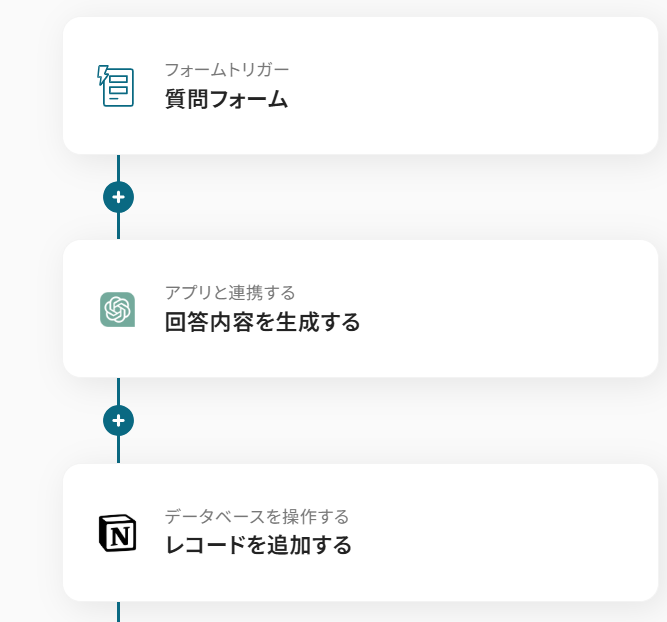 今回はフォームの質問をChatGPTで整理し、NotionにQ&A形式で記録するフローを作成していきます!