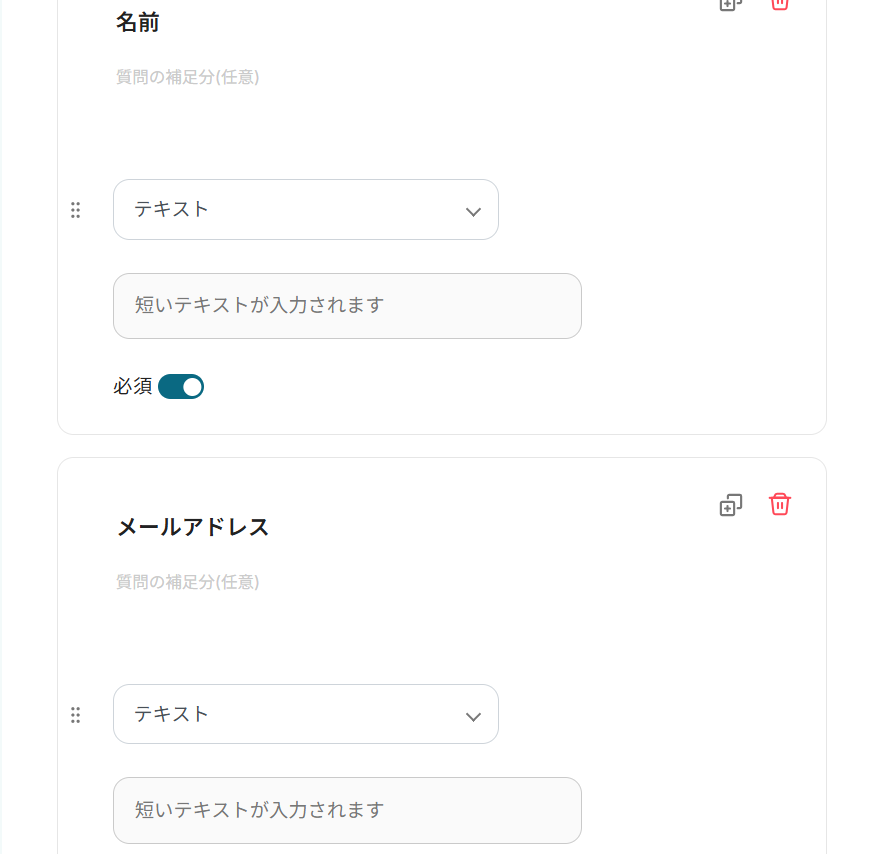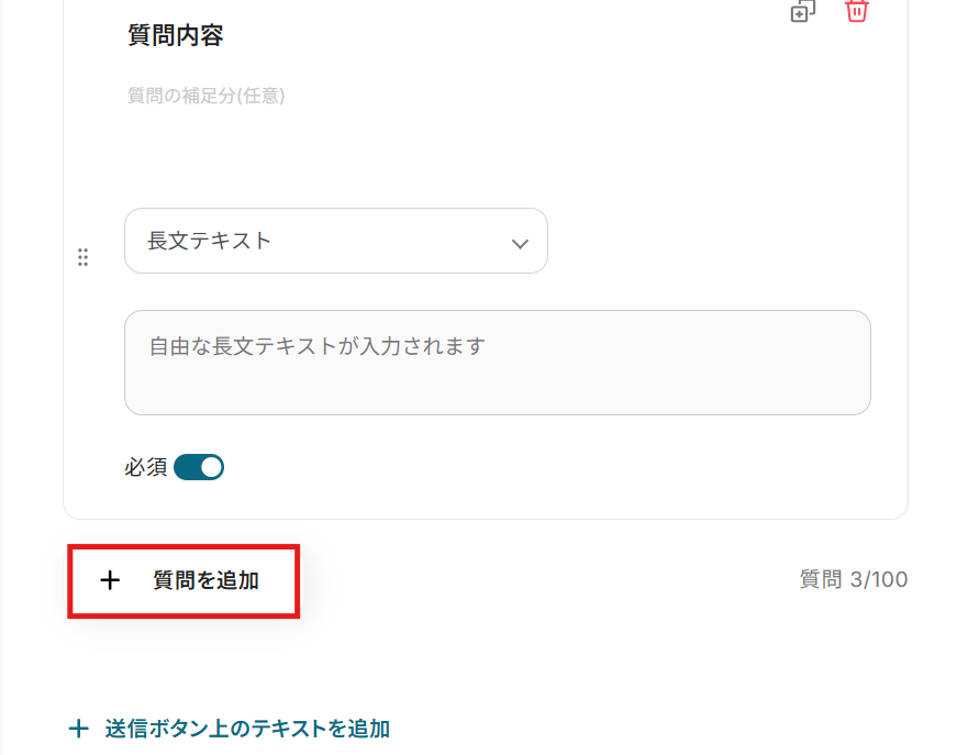 質問内容を増やしたい場合、赤枠をクリックすると追加できます。
