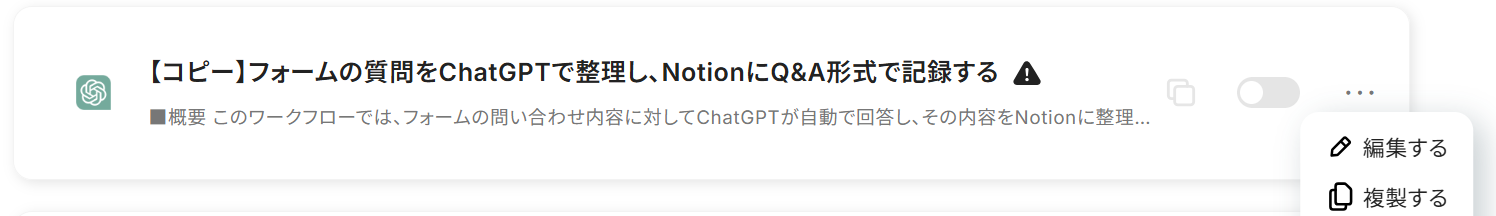 質問内容と回答を手動でまとめている場合、このフローが便利です。