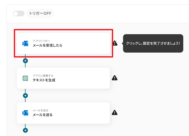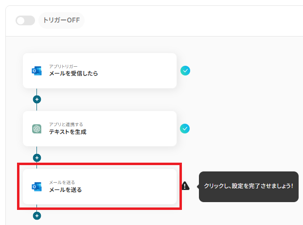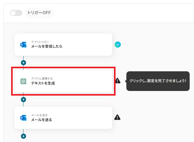 - Outlookのトリガー設定およびChatGPTとOutlookのアクション設定
