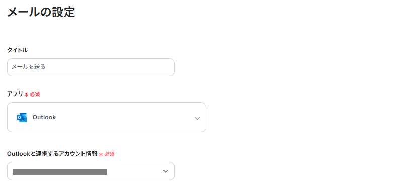ステップ5:Outlookのアクション設定