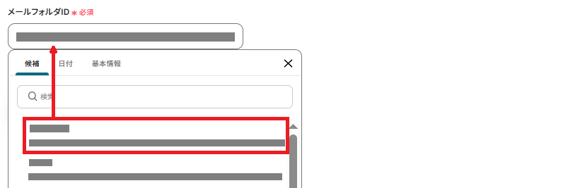 次にメールフォルダIDを候補から選択してください。