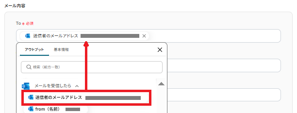 次にメール内容を入力します。こちらもステップ3、4で取得したアウトプットを利用して入力することもできます。