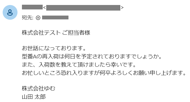 連携したアカウント宛にメールを送信し、テストしてください。今回は例として以下のような内容を送信しています。