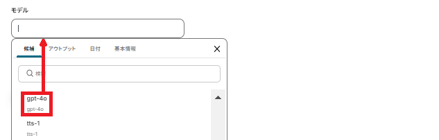 モデルは候補から選択してください。デフォルトでは「gpt-4o」を使用します。