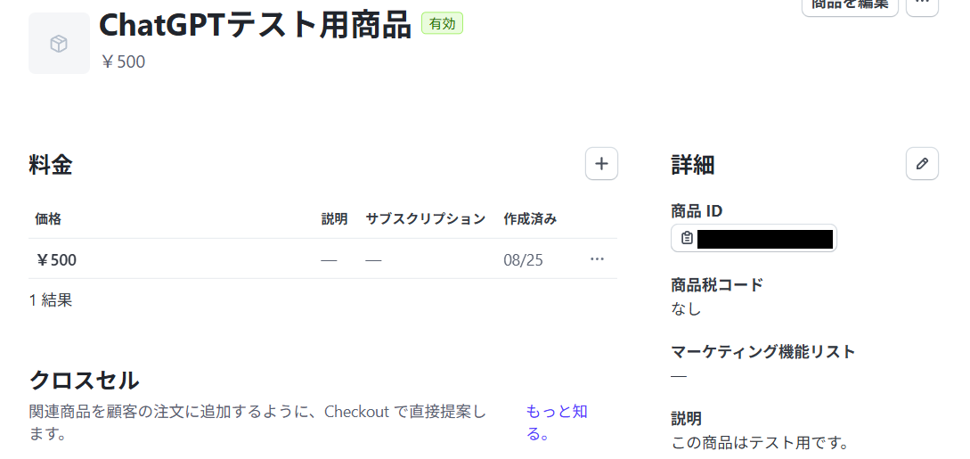 「ChatGPTで生成した商品説明文を、Stripeに手作業で登録している」