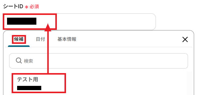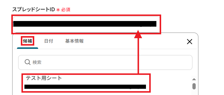 次に「スプレッドシートID」を候補から選んでいきましょう。