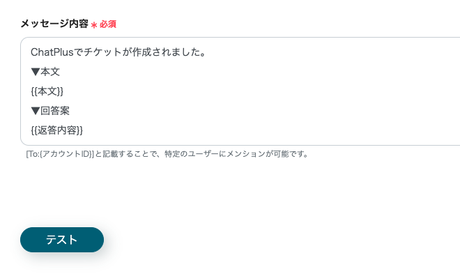 こちらではChatworkに通知する定型文の設定を行います。