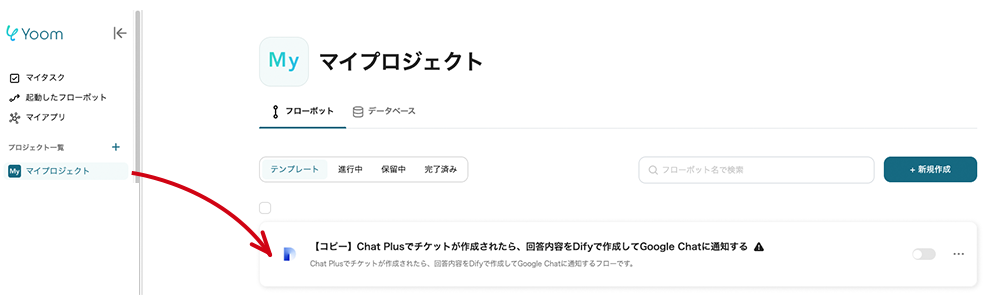 ステップ2 Yoomのフローボットテンプレートをマイプロジェクトへコピーする