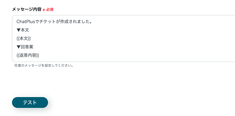 - ユーザーからのチャット本文とDifyの回答案を通知する設定です。