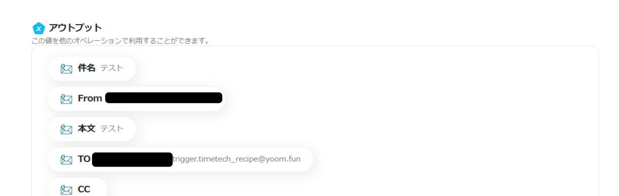 アウトプットが入力されている部分は、メールの内容によって変化します。