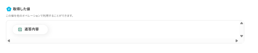 この後、この取得した値の内容を入力に使用することができます。