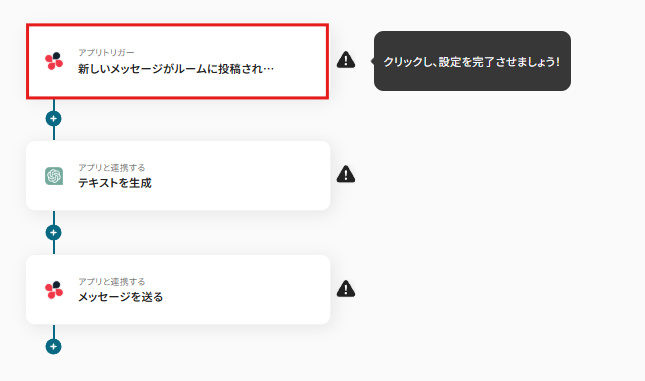 Chatworkにメッセージが投稿されたことを、自動化のトリガーにするための設定を行います。