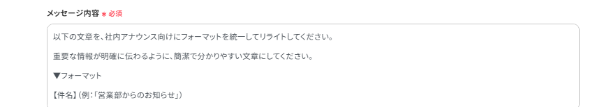 メッセージ内容にはChatGPTへの指示を入力します。