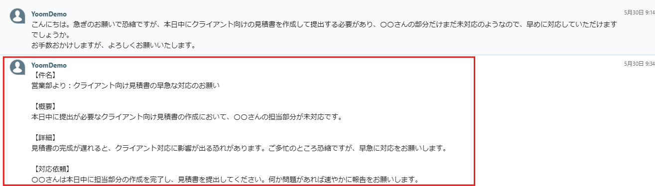 投稿メッセージを校正したうえで他のルームにも自動通知することで、情報の伝達漏れや誤解を防ぎ、コミュニケーションを円滑にします。