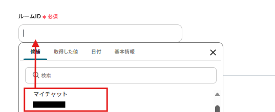 ルームIDは以下のように表示される候補から選択します。
