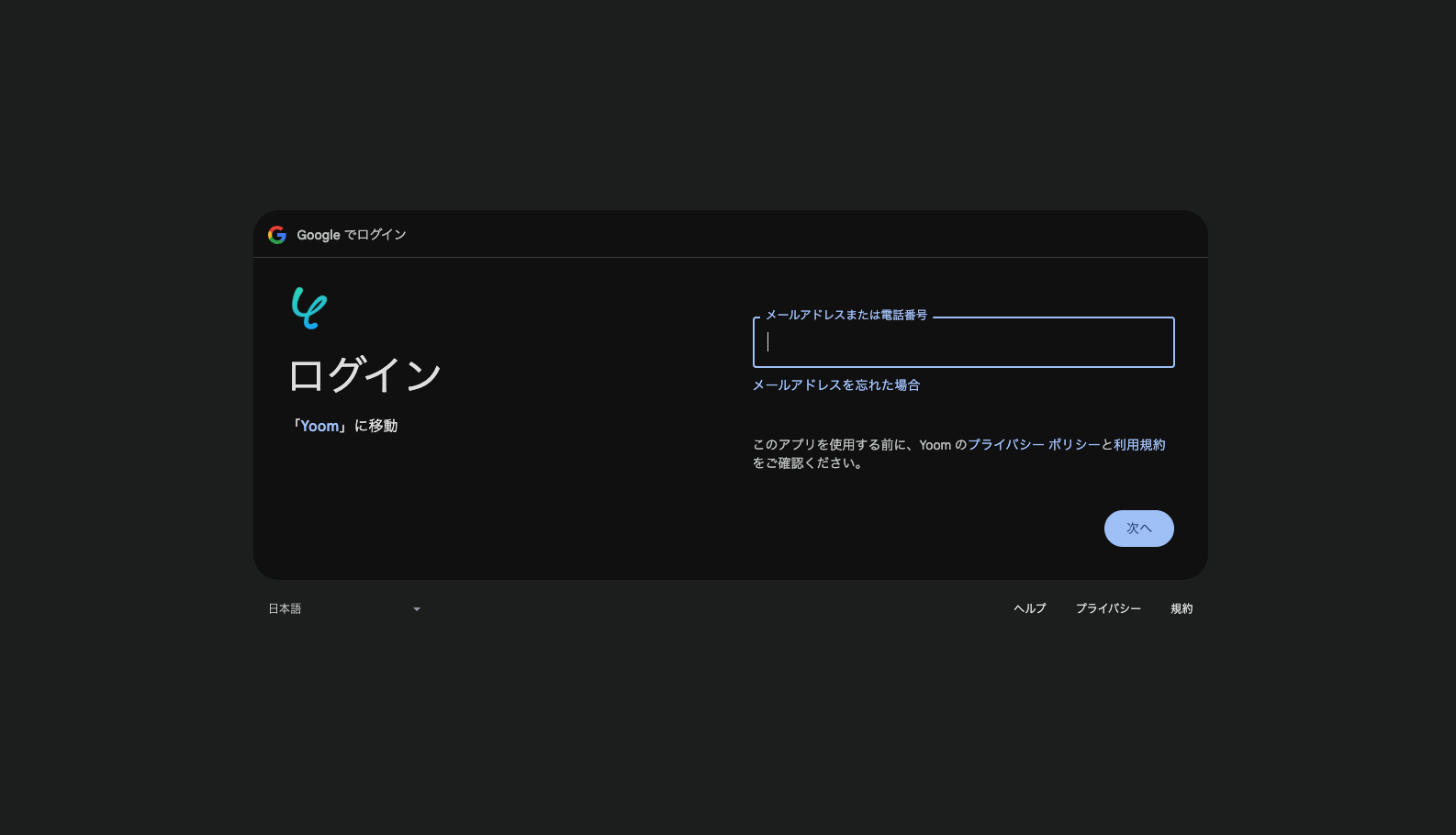 Yoomに登録済みの方はログインし、未登録の方は無料登録を行った後に設定を進めてください。