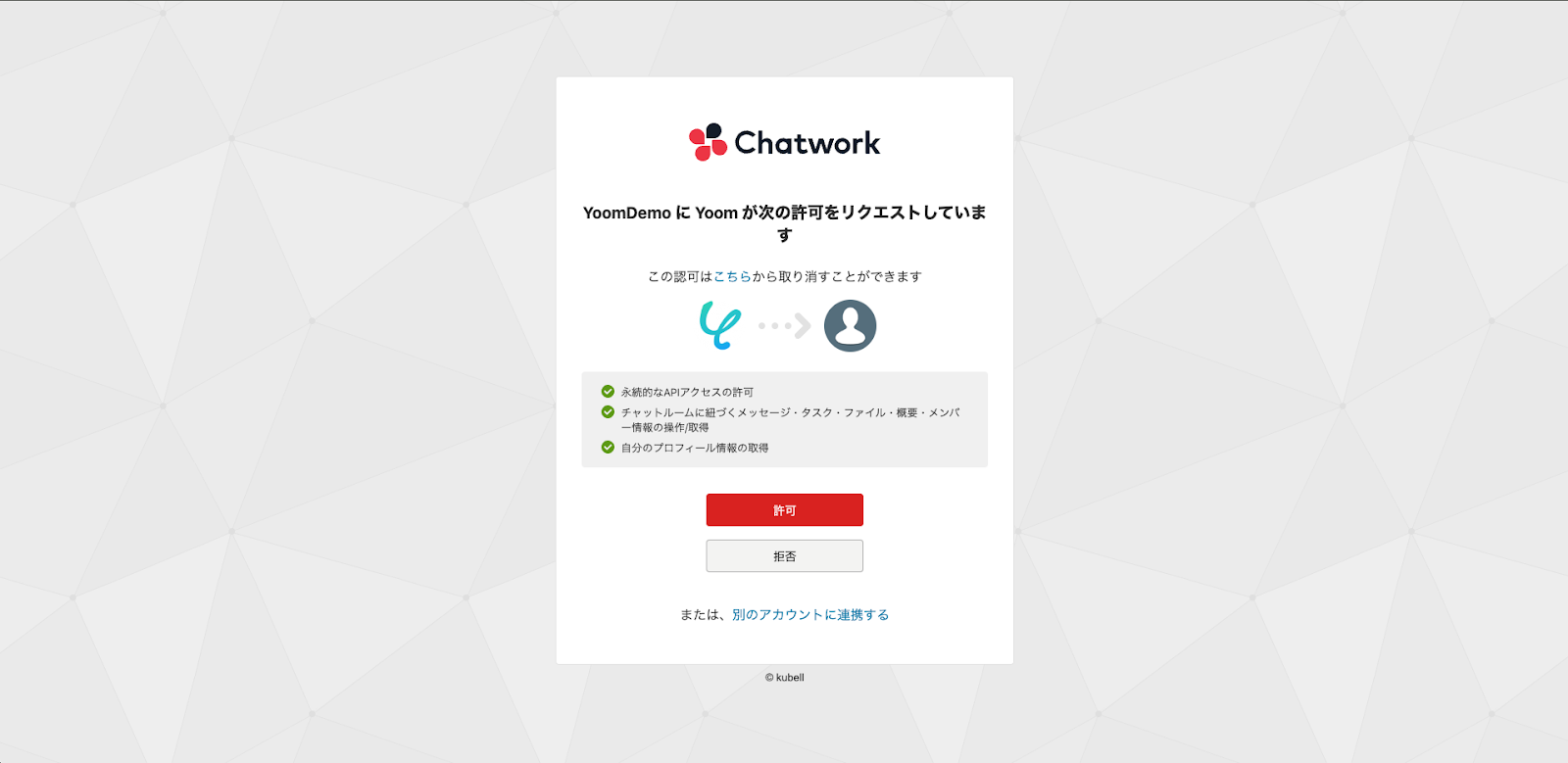 アクセスリクエストの許可をすると、Chatworkの連携が完了します。