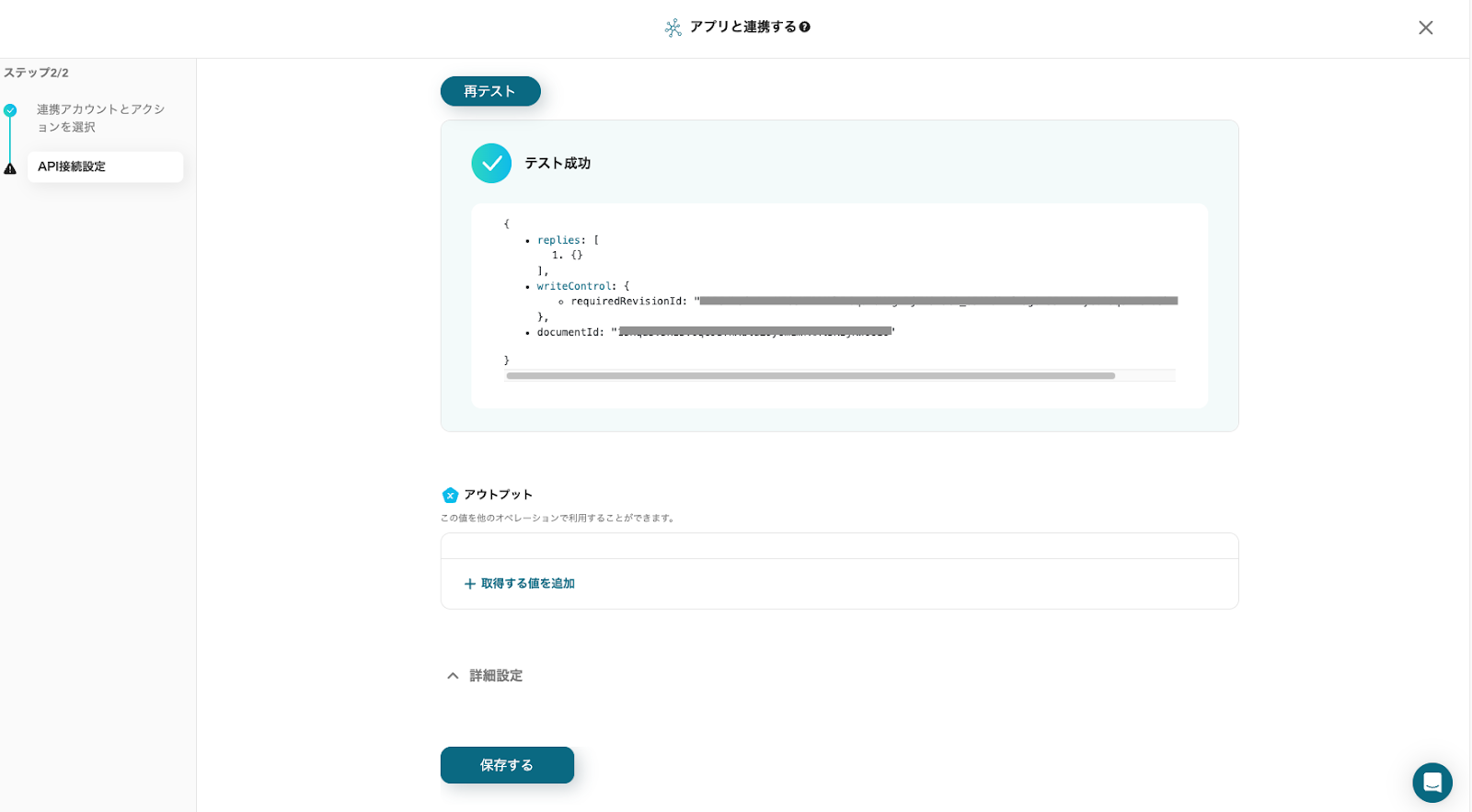 アウトプットとGoogleドキュメントを確認し、「保存する」をクリックしてください。