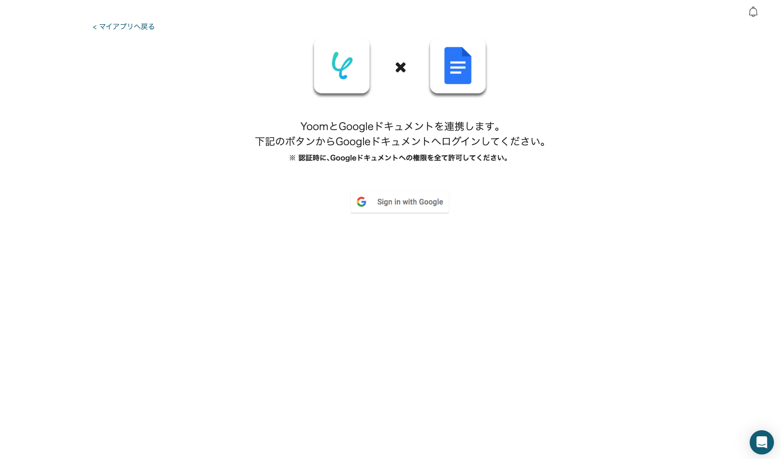 ログイン後にアクセス許可を行うと、Googleドキュメントのマイアプリ連携が完了します。