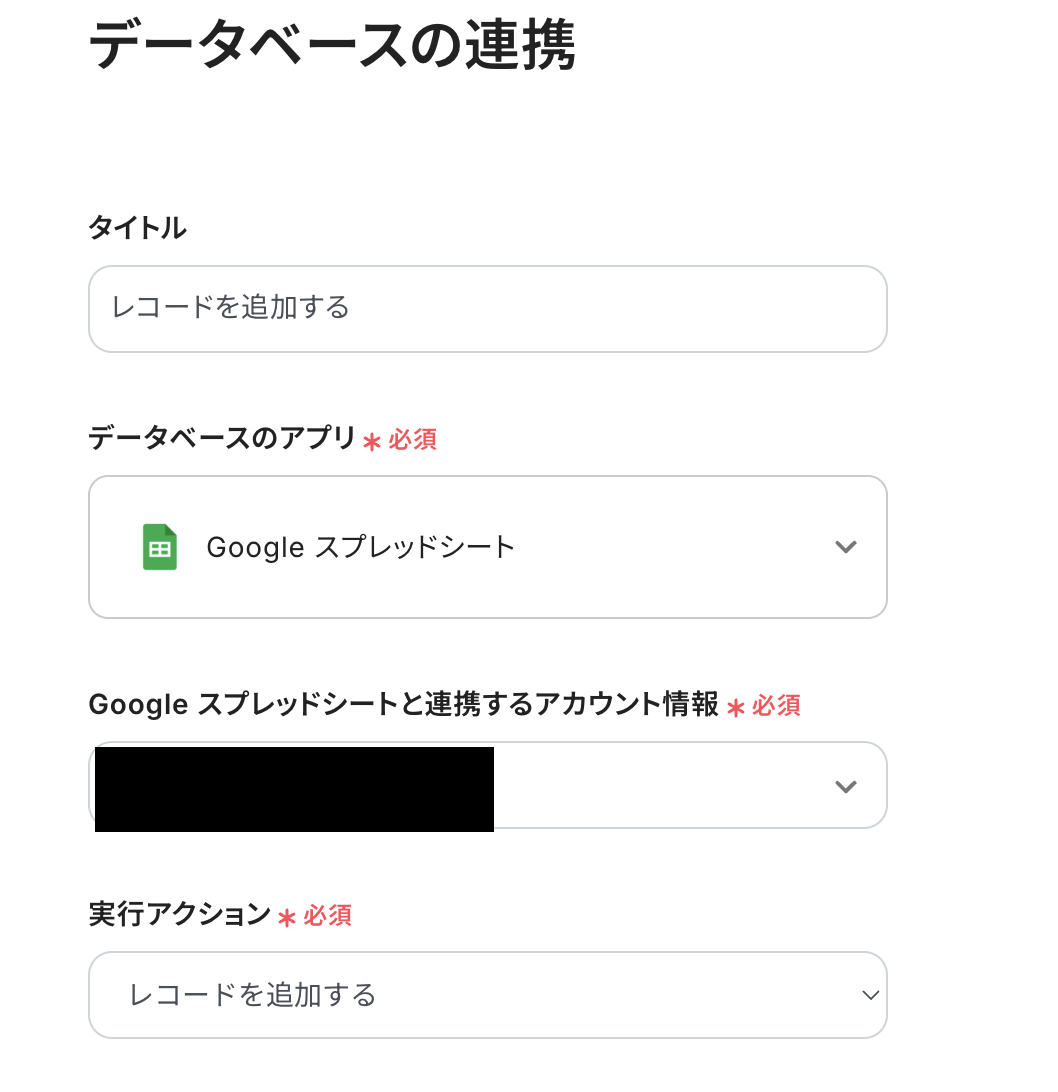 実行アクションは「レコードを追加する」が選択されていることを確認してください。