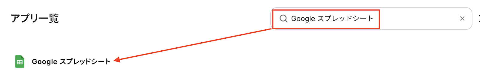 アプリ一覧は、検索窓を使いGoogle スプレッドシートを選択しましょう。