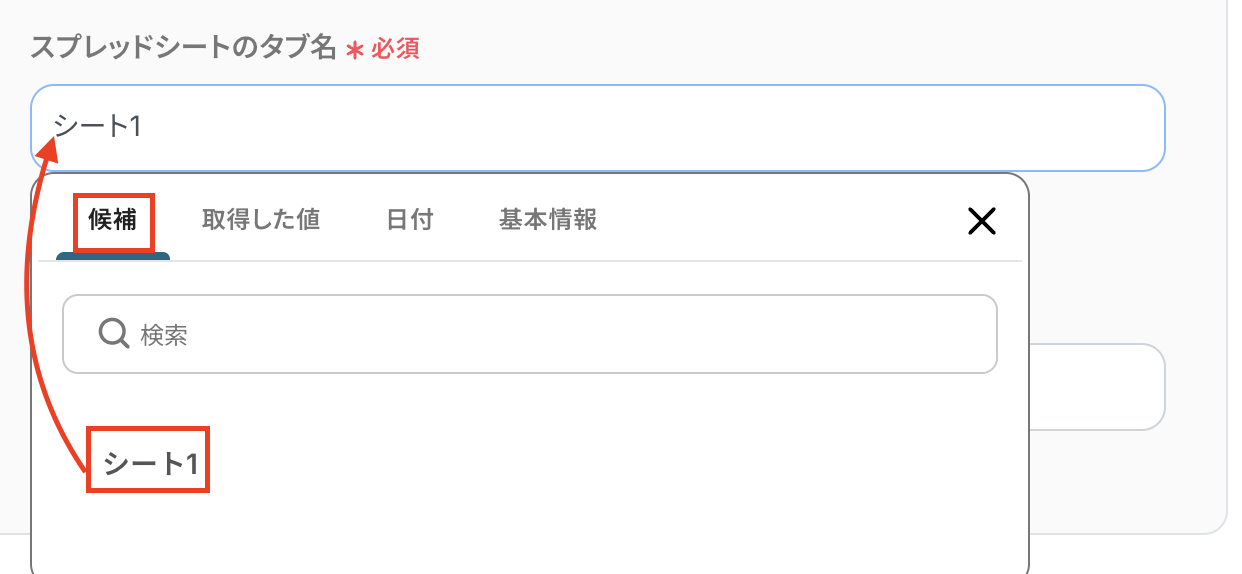タブ名も同様に、候補から選択してください。