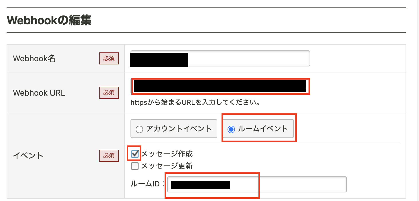 WebhookURLをコピーして、Chatworkの管理画面で設定しましょう。