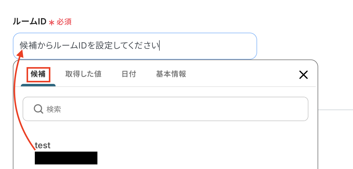 ルームIDは候補から選択してください。