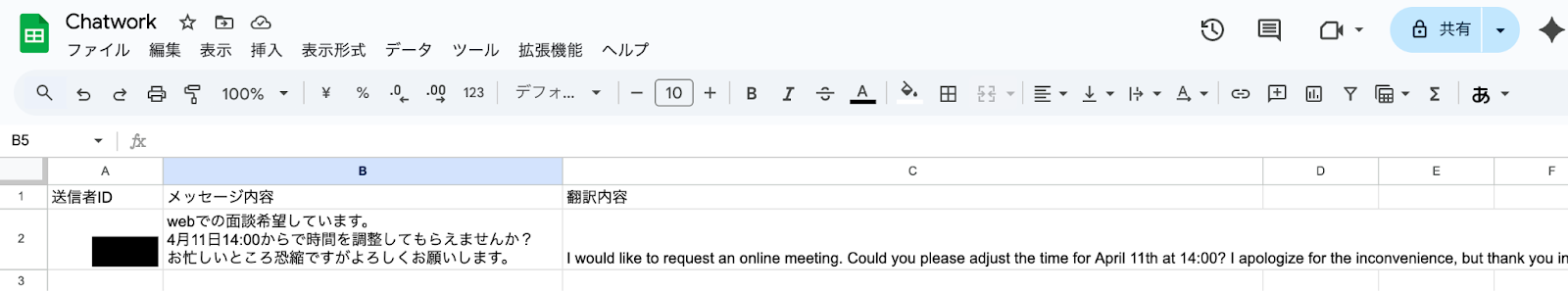 Chatworkの内容をGoogle スプレッドシートで一元管理することが期待できます。