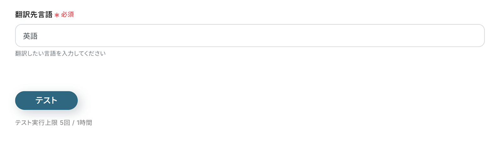 翻訳先言語を設定し、テストをクリックしましょう。