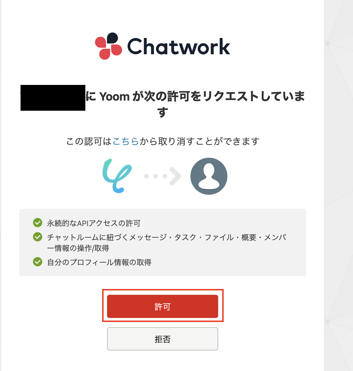 「許可」をクリックしてください。