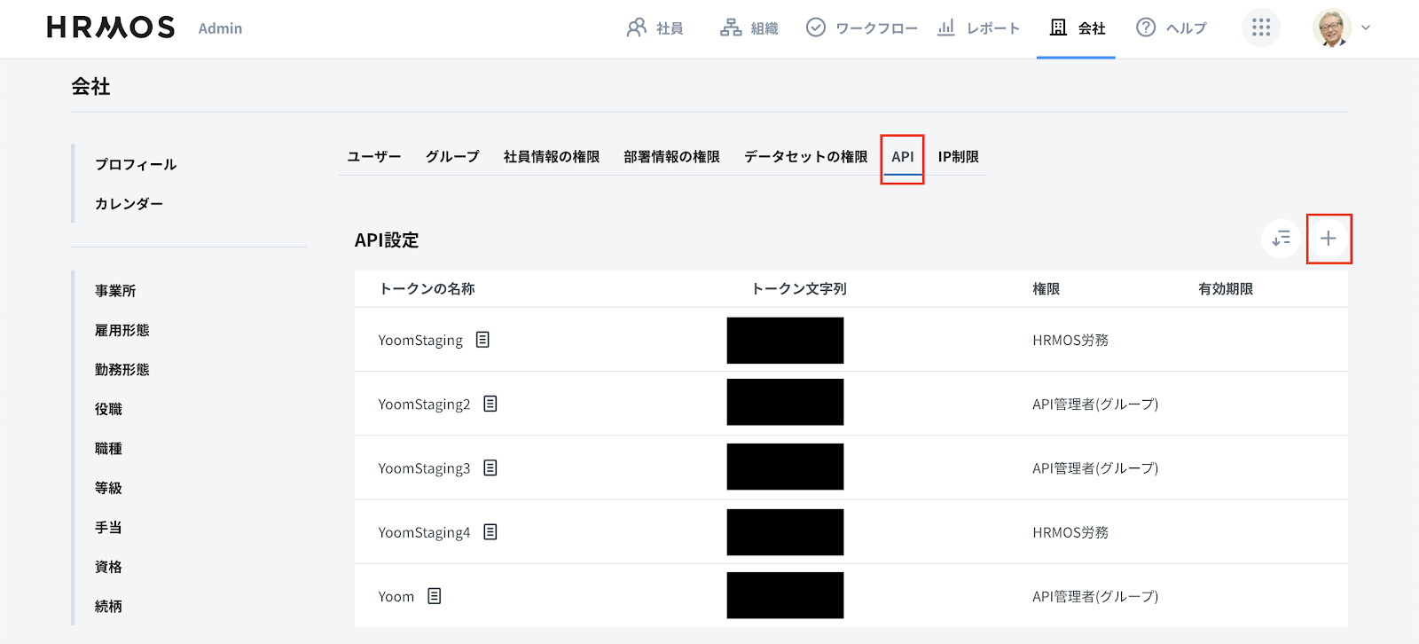「Adminの設定」ページで「API」タブを選択し、新たにAPIトークンを生成します。