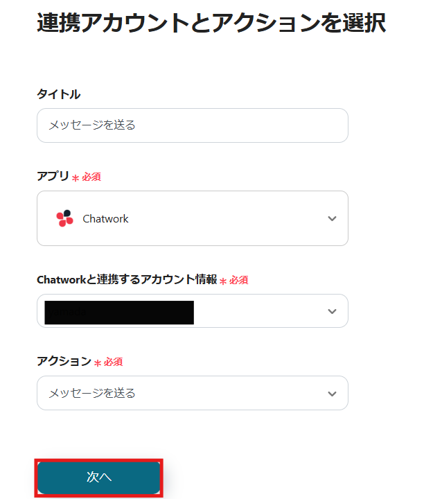 Chatworkを選択できたら、使用するアカウントで設定を行ってください。