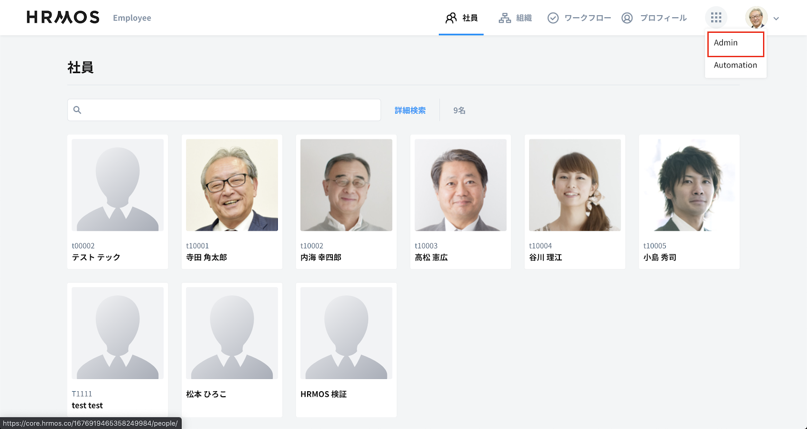 まず、HRMOSに管理者権限でログインし、Admin画面に遷移します。