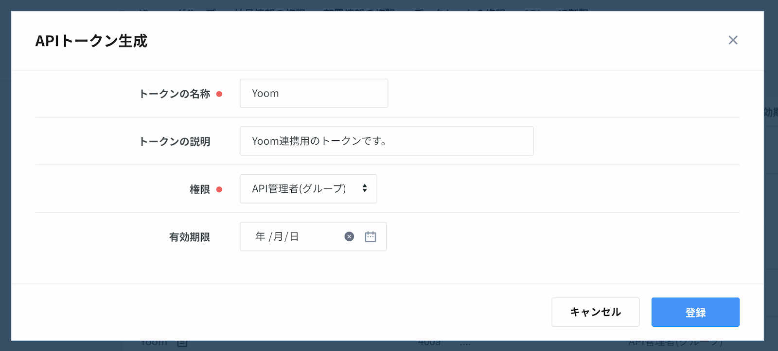 トークン生成時のポップアップで、トークンの名称と権限を選択してください。