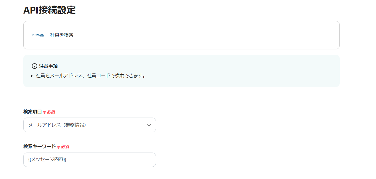 そこで今回は、Chatworkにメッセージが投稿された際に、自動でHRMOSから該当する社員を検索し、結果を通知する方法をご紹介します。