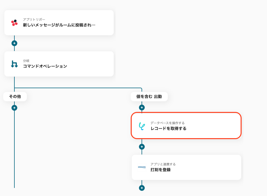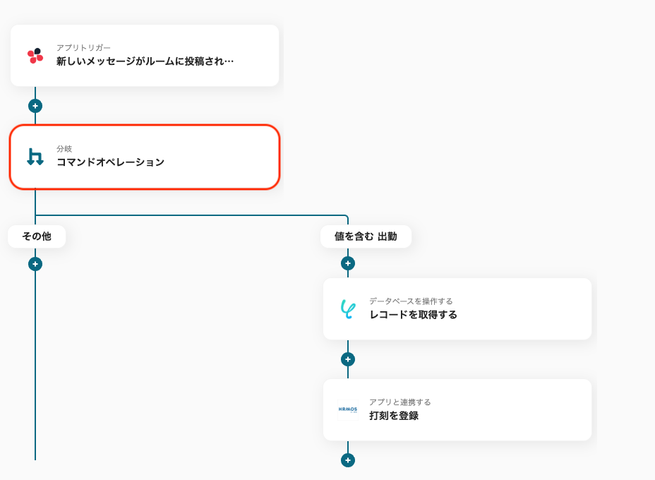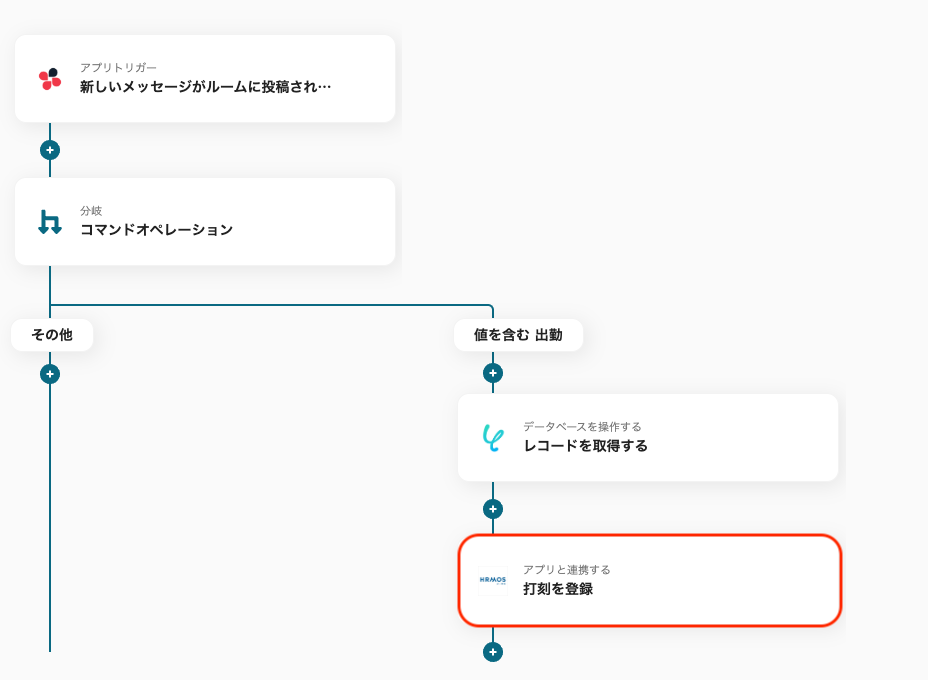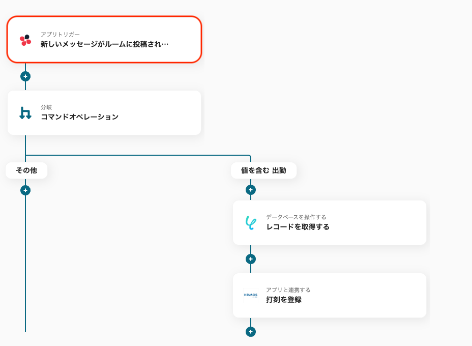 これでChatworkでメッセージが投稿されたらHRMOS勤怠に打刻が自動登録されます。