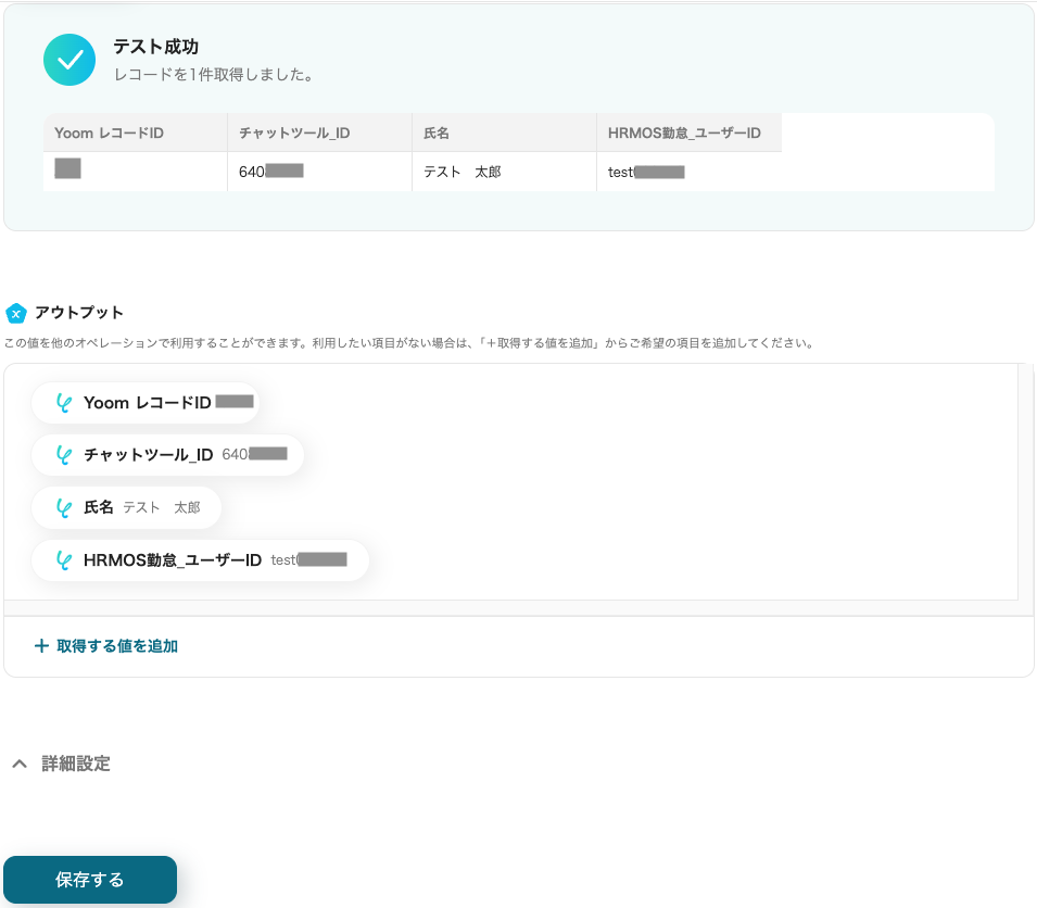 テストに成功し、情報を取得できていることを確認したら「保存する」をクリックしてください。