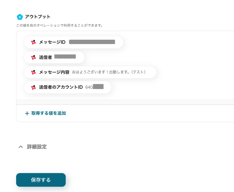 アウトプットに表示された情報を確認し「保存する」をクリックしてください。