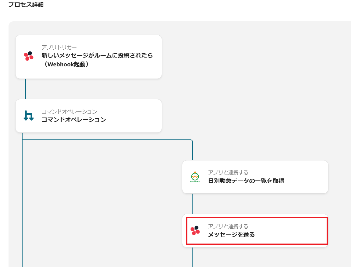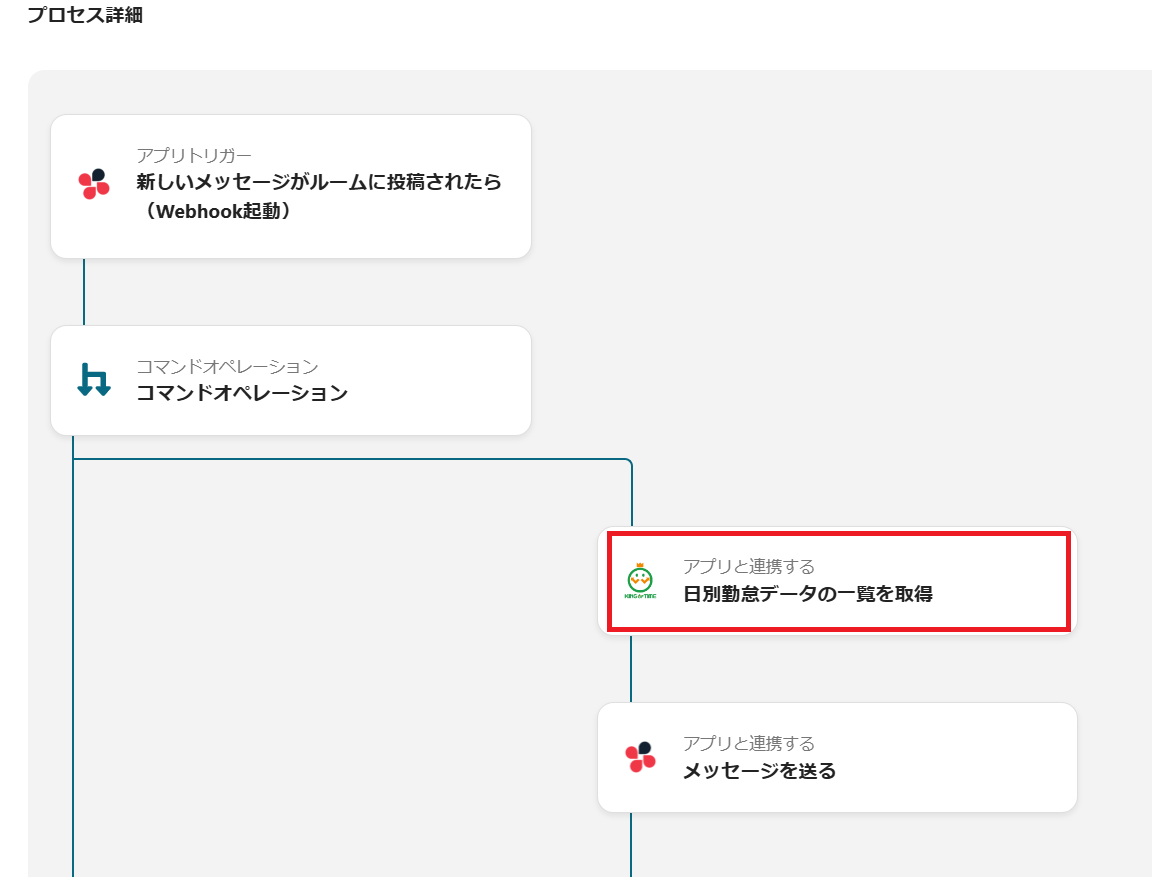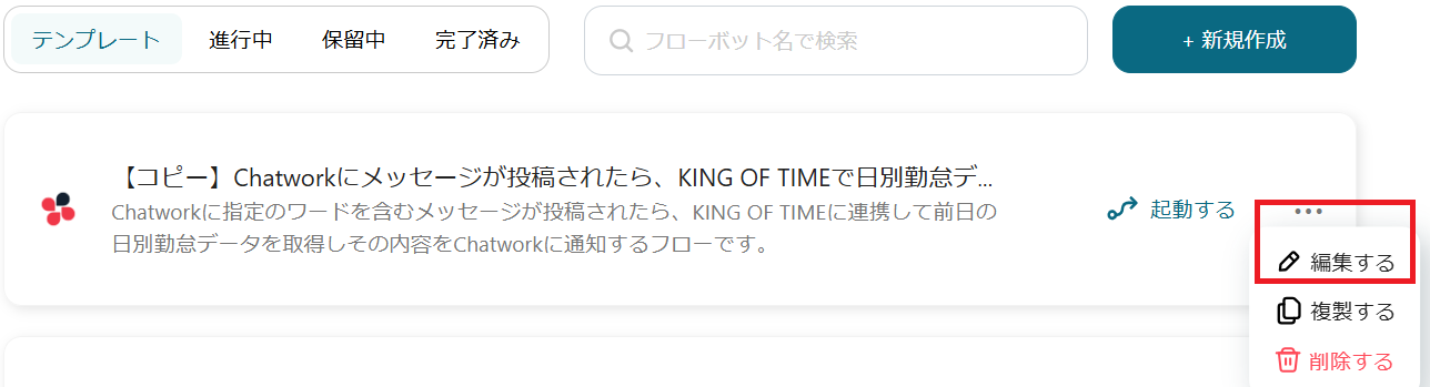 登録が完了したら、「Chatworkにメッセージが投稿されたら、KING OF TIMEで日別勤怠データを取得しChatworkに通知する」フローボットを作成してみましょう。
