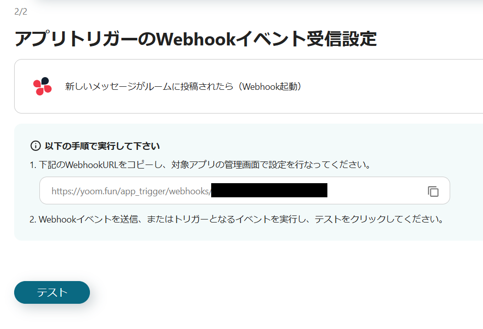 以下の画面になるので、Webhookについてはこちらを参照し、登録してください。