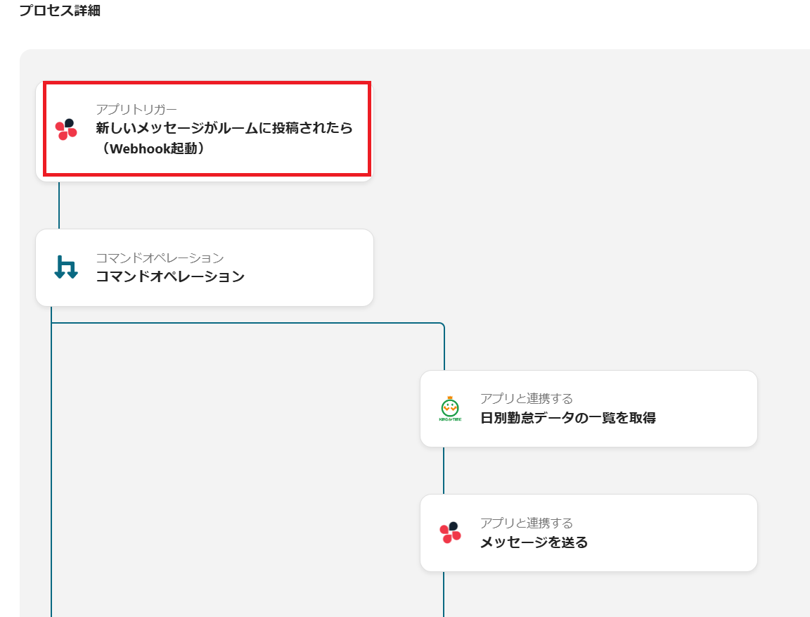「新しいメッセージがルームに投稿されたら(Webhook起動)」を選択します。