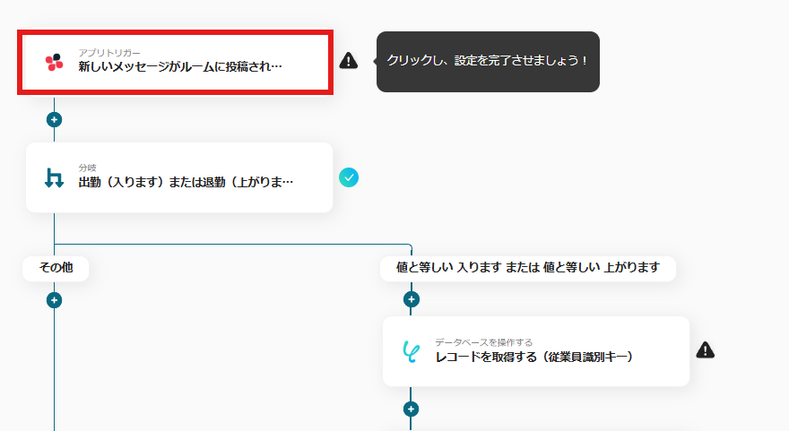 「新しいメッセージがルームに投稿されたら(Webhook起動)」をクリックします。